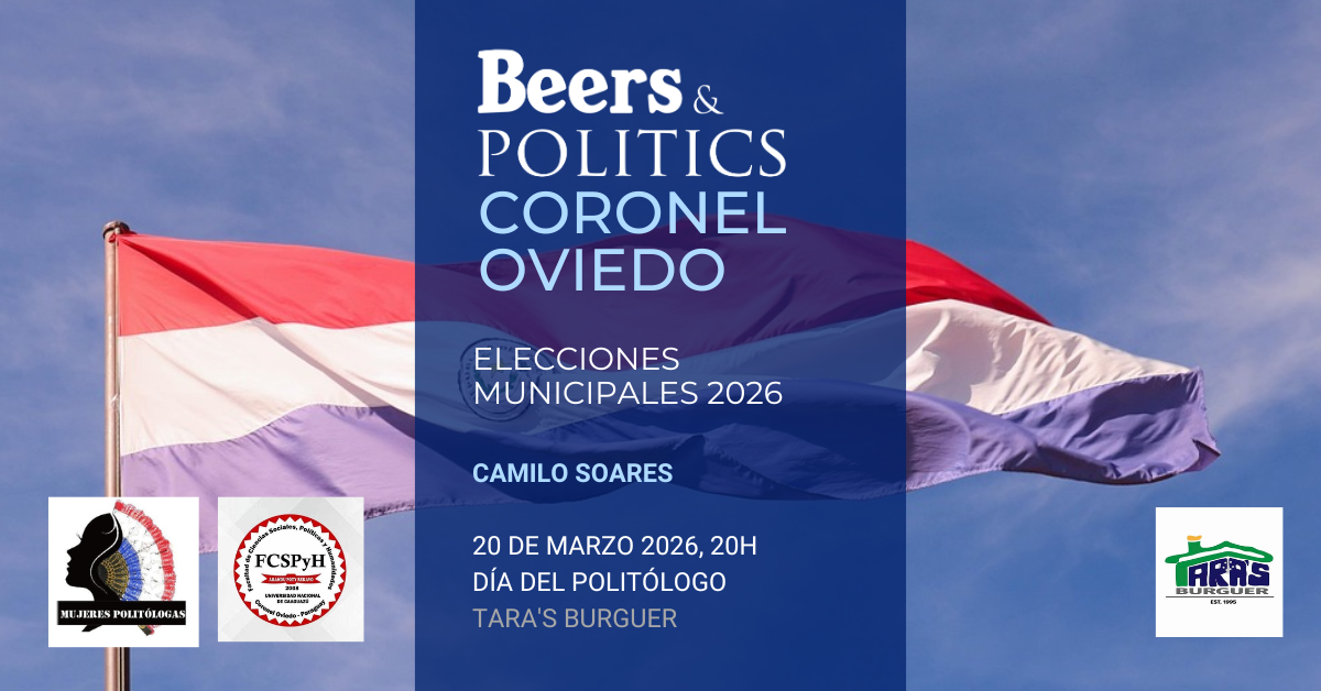 El próximo viernes, 20 de marzo, a las 20h, tendrá lugar un nuevo encuentro Beers&Politics en Coronel Oviedo, Organizado por la Facultad de Ciencias Sociales, Políticas y Humanidades de la Universidad Nacional de Caaguazú y la Asociación Mujeres Politólogas del Paraguay. Hablaremos de «Municipales 2026«, junto a CAMILO SOARES.